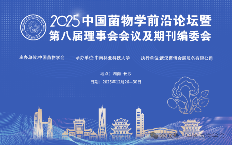 为总结2025年菌物学领域研究进展与成果,促进菌物学科发展与菌物产业进步,经中国菌物学会研究决定,于2025年12月26-30日在湖南长沙召开2025年中国菌物学前沿论坛,并在同期召开中国菌物学会第八届理事会会议及《菌物学报》编委会。欢迎各位菌物学界同仁、学会会员积极参加会议,有关安排通知如下: