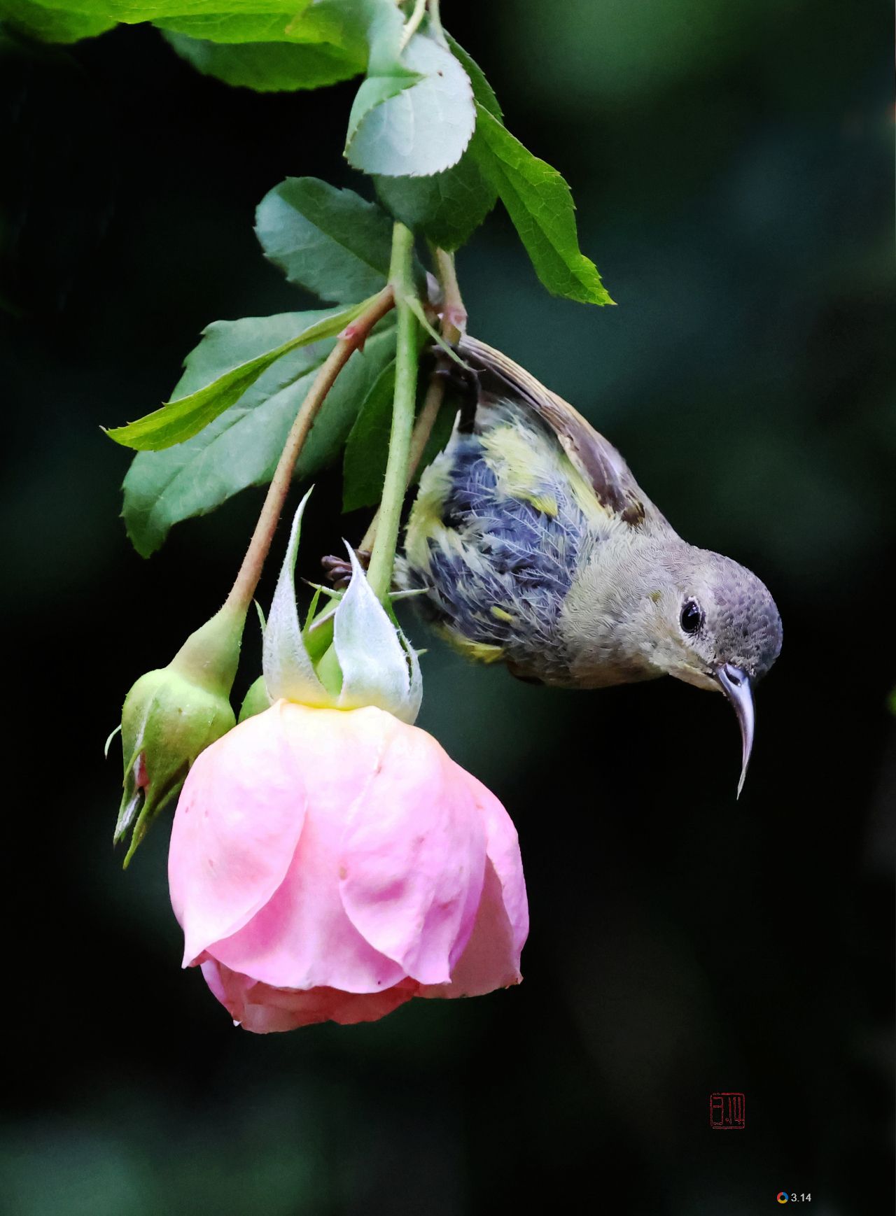 这只小鸟确实是只“小鸟”,她是蓝喉太阳鸟没有长大的雌鸟。