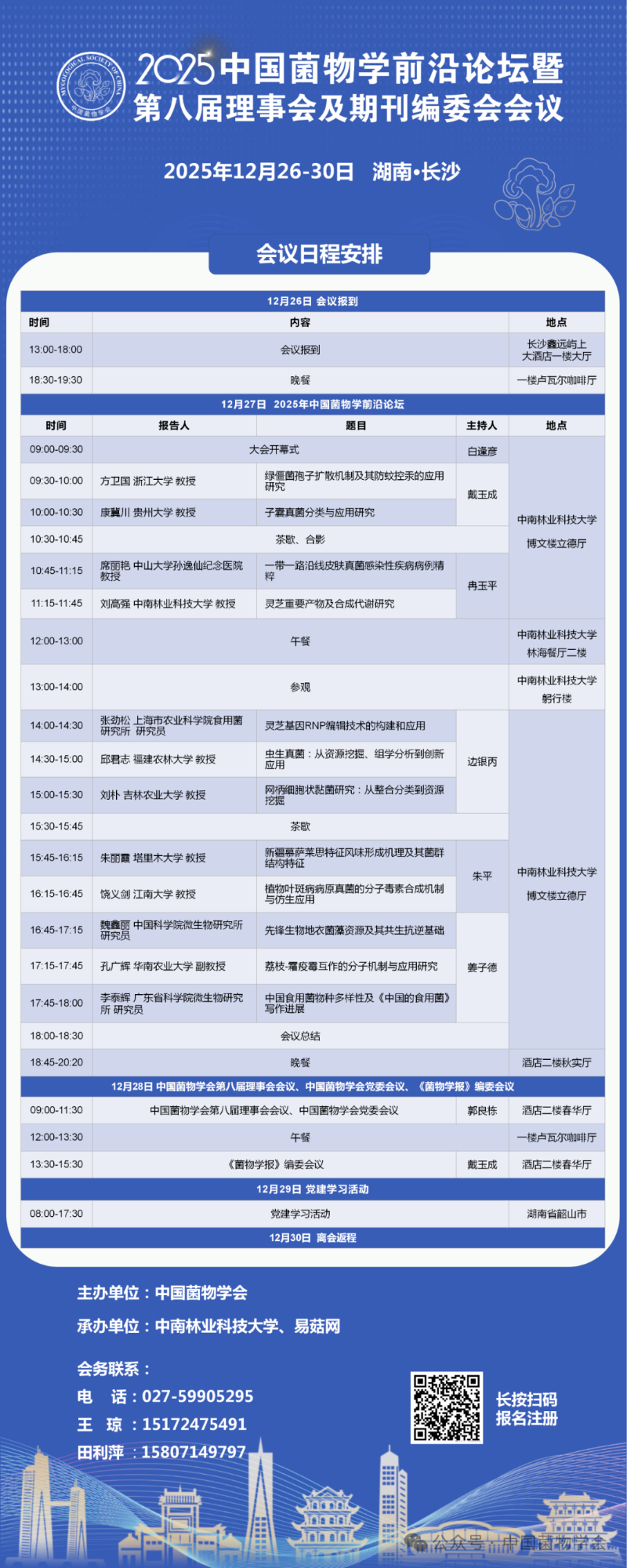 【会议日程】2025年中国菌物学前沿论坛暨第八届理事会及期刊编委会议