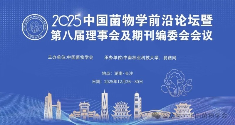 为总结2025年菌物学领域研究进展与成果,促进菌物学科发展与菌物产业进步,经中国菌物学会研究决定,于2025年12月26-30日在湖南长沙召开2025年中国菌物学前沿论坛,并在同期召开中国菌物学会第八届理事会会议及《菌物学报》编委会会议。欢迎各位菌物学界同仁、学会会员积极参加会议,有关安排通知如下: