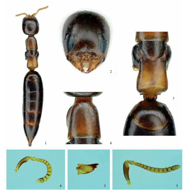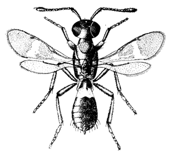 成虫体长约为1mm~1.5mm,体色为黑褐色稍带光泽,从外形上酷似长有翅膀的黑蚂蚁。