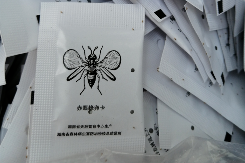 除了单纯利用赤眼蜂进行生防,我国还创制出了一系列赤眼蜂新产品,比如将生防菌和赤眼蜂结合在一起的载菌赤眼蜂。当赤眼蜂在寻找寄主的过程中能够将生防菌散布到寄主表面,从而具有蜂灭虫卵、菌灭幼虫的双重功效。
