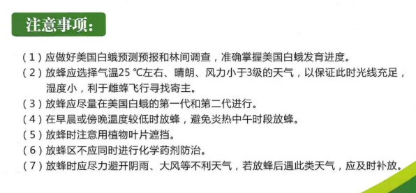 很多小蜂对于寄主的发育阶段有严格的要求,因此放蜂的时期对于防治效果有着不可忽视的影响。