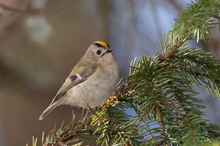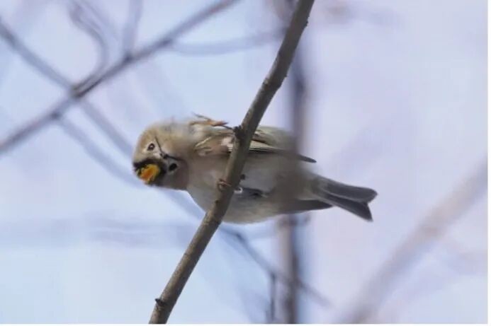 如果把时间拨回春天,那时的北方针叶林中还回荡着戴菊们尖细轻巧的歌声。早在三月末,回到繁殖地的戴菊们就开始了配对筑巢的任务。求偶的雄性会在觅食的同时随性来上几段小曲,若是有幸唤来了对他感兴趣的雌鸟,他也会毫不吝啬地为对方“开花献礼”。