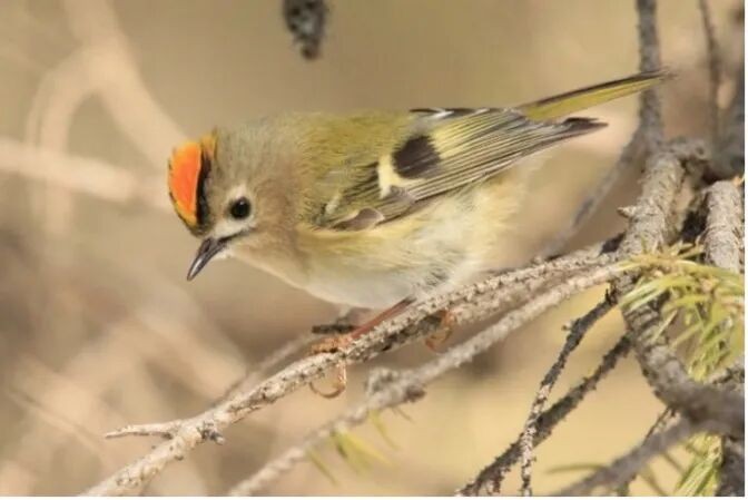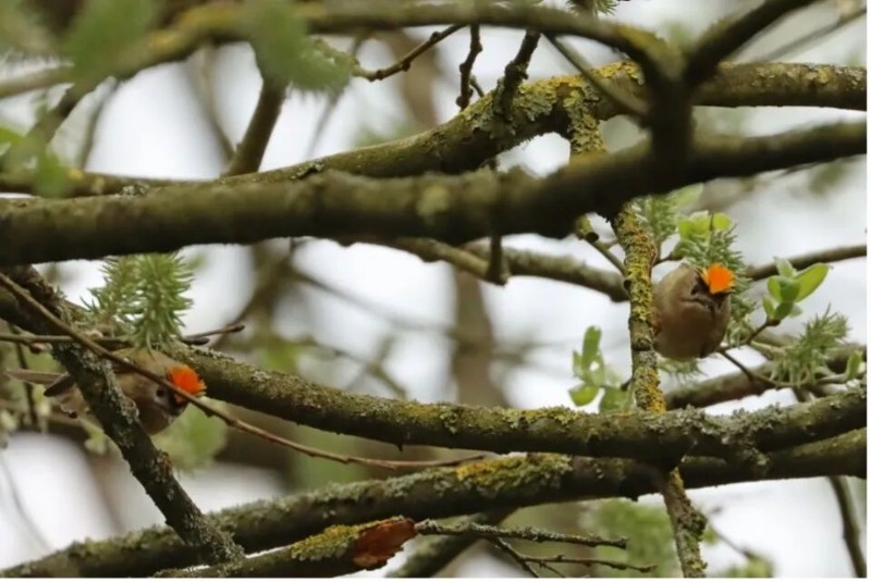 在欧洲,分布重合且生境偏好相似的同属近亲火冠戴菊(R. ignicapilla)常与戴菊争抢领地 © Paul Cools via iNaturalist