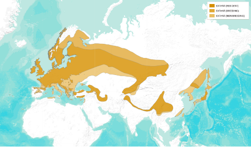 绝大多数的戴菊都会迁徙,只是繁殖和越冬区域的重叠使得它们在不少地区全年可见© BirdLife International and Handbook of the Birds of the World (2018)