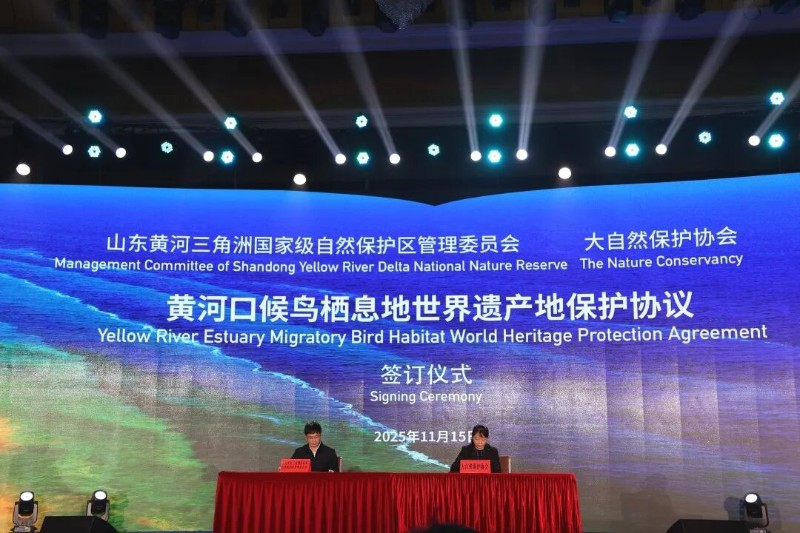 2025年11月15日,以“黄河拥抱蔚蓝 我们握手世界”为主题的第三届“沿着黄河遇见海”黄河口国际观鸟季在山东东营开幕。在开幕式上,东营市政府及黄河三角洲自然保护区分别与包括大自然保护协会(TNC)在内的协会、高校、科研机构、国际组织及地方政府签订合作协议,涉及湿地保护、世界自然遗产地守护、鹤类国家保护研究中心共建及协同保护发展等多个领域。同期举办的国家公园协同保护国际交流活动,汇聚各界智慧,为黄河口国家公园建设及人与自然和谐共生的协同保护注入新动能。