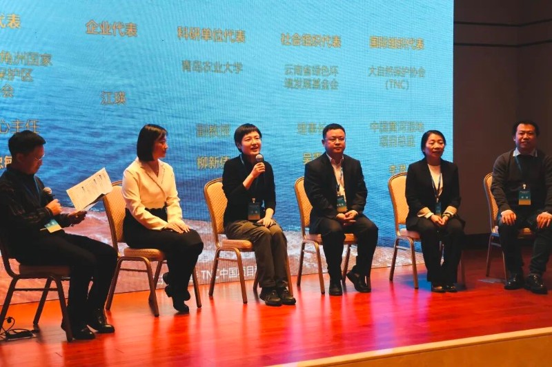 圆桌讨论环节成为此次活动的一大亮点。在彭奎博士的主持下,山东黄河三角洲国家级自然保护区管委会科研中心主任王忠敏、世界五百强企业代表江瑛、青岛农业大学副教授柳新伟、云南省绿色环境发展基金会理事长吴霞、TNC中国黄河湿地项目总监李潜等多元主体齐聚一堂,围绕“国家公园协同保护的多元参与与治理创新”展开热烈讨论,碰撞出诸多兼具创新性与可行性的思路与方案,包括引导绿色产业发展、加强科学监测、引进商业优势、动员社区参与、以及促进国际合作等。活动最后,董珂主任与主办方代表分别总结,对本次活动的成果给予高度肯定,强调此次活动是推动国家公园协同保护的重要起点。