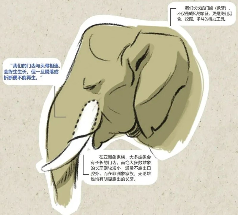 遇到危险,我们还可以伸出长长的牙当作武器;亲朋好友久别重逢时,大象甚至用撞击象牙来表示兴奋和快乐。