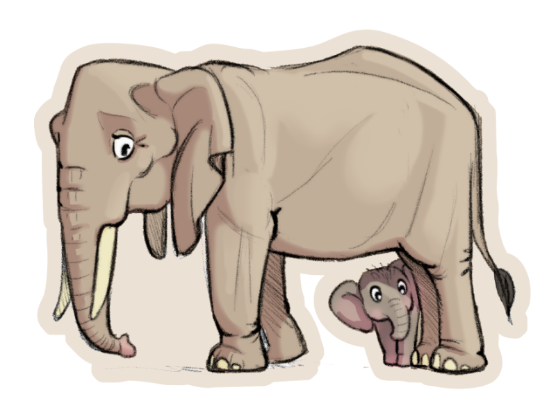 我们的家族通常都是由年长并富有生活经验的成年雌象和未成年小象组成的。雄性小象到了8-13岁性成熟时便会离开大家去独自闯荡世界,而雌象会一直跟随族群生活。
