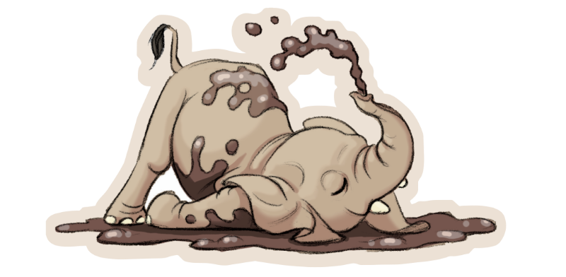 这个正在洗泥浴的是罗丝姐姐——温迪阿姨的女儿——她总是陪我玩游戏,还教我“驯服”那不听话的鼻子~ 看她洗得超开心