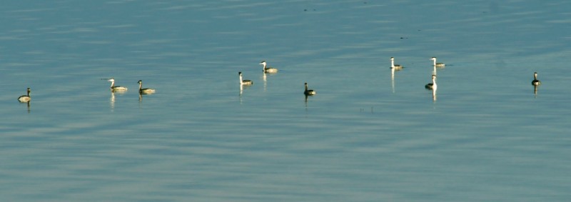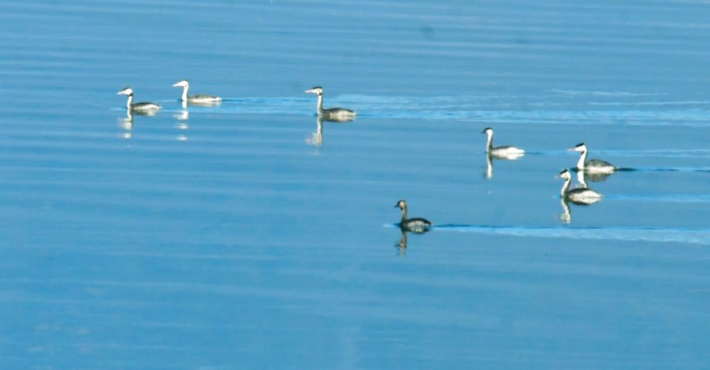 近几年来,石屏县委、县政府不断加大对异龙湖保护治理力度,使水质逐渐提升改善,湖水透明度越来越高,湖里的鱼类资源已越来越丰富。凤头鸊鷉属潜水觅食鸟类,透明度越高,水质透明度越高,越有利于它快速锁定目标,精准觅食,提高觅食效率。今年在异龙湖白浪渔歌片区,经过工作人员连日的监测,发现风头鸊鷉较往年有所增加。冬日的异龙湖,鸥鹭翻飞,百鸟齐鸣,在众多鸟类蹁跹的舞姿中,凤头鸊鷉绝对是属冬日里最优雅的芭蕾舞者,只见它们高傲地昂着头,游荡于异龙湖水面,时而潜水、时而梳妆、时而扇翅,时而嬉戏,它们在宁静、秀美的异龙湖把日子过得舒畅,在异龙湖这个和谐的鸟类大家园,凤头鸊鷉把最优雅的舞姿,留给薄雾飞纱的暖冬,留给了生机勃勃的异龙湖。