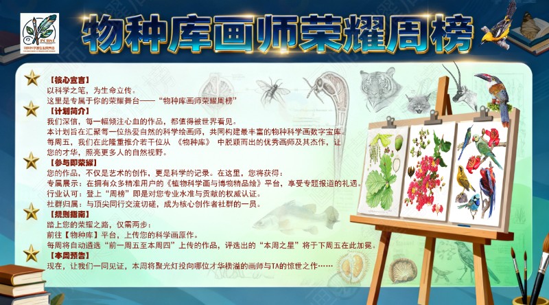 「物种库画师荣耀周榜」是专属于科学绘画师的每周荣耀舞台