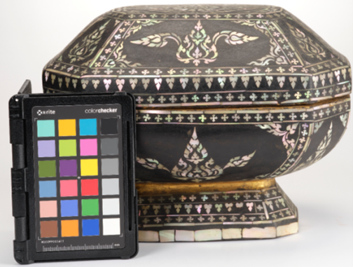 图1 黑漆嵌螺鈿洋花八角長方髙足盒