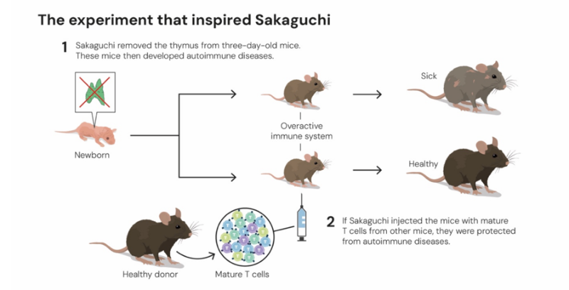 时间回到1995年,当时普遍认为,免疫系统对自身组织的耐受性主要通过胸腺中潜在有害免疫细胞的清除(即“中枢耐受”)来建立。然而,日本科学家坂口西蒙(Shimon Sakaguchi)逆流而上,做出了一个关键的发现——他揭示了免疫系统的复杂性远超想象,并首次发现了一类此前未知的免疫细胞,它们在保护人体免受自身免疫性疾病侵害方面发挥着重要作用。