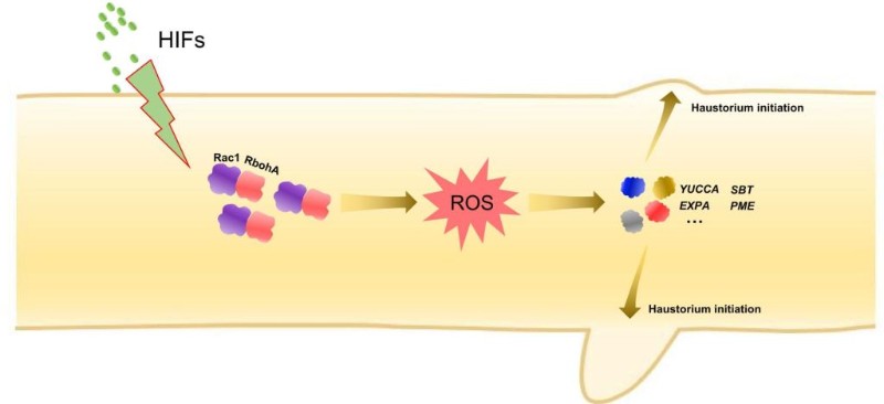 图 SaRac1 介导的活性氧产生与吸器形成机制模式图