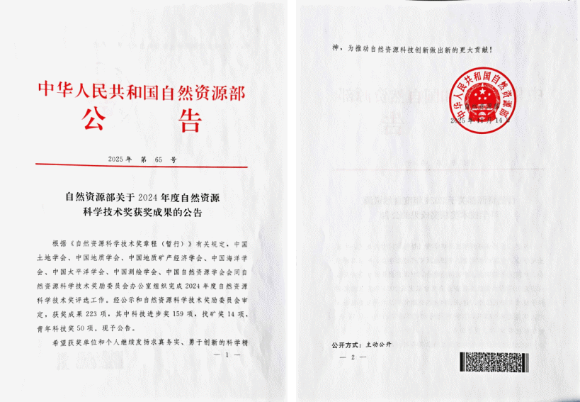 自然资源部关于2024年度自然资源科学技术奖获奖成果的公告