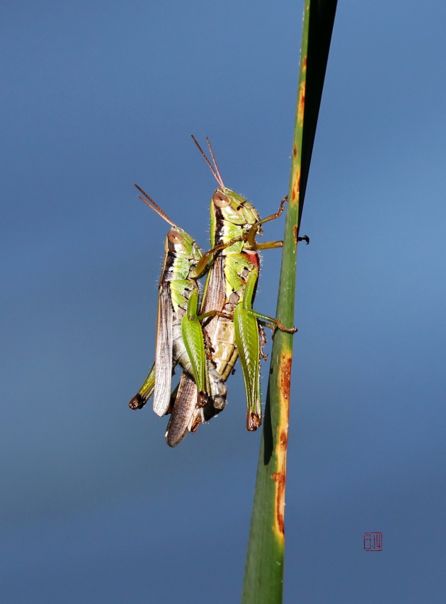 日本稻蝗(雄左雌右)
