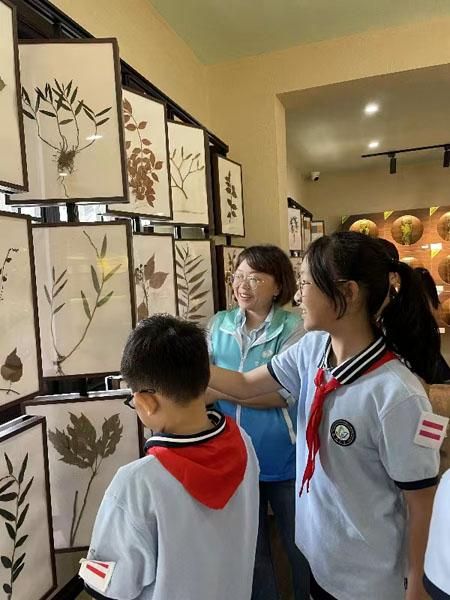 在枫泾小学的校园里,环保科普讲师蒋轶婷在孩子的带领下一边参观学校的中医药主题馆,一边结合生物多样性主题为孩子们科普生物多样性对“地球妈妈”的重要性。也让参加活动的孩子们深刻体会到种植中草药、制作标本等不但是传承中国传统医药文化,更是为保护中草药植物多样性做出很好的贡献。