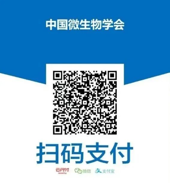 2.扫码付款。扫描中国微生物学会二维码支付,缴费后可在查询交易记录中的订单自行开具发票。