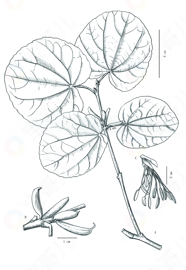 是连香树科连香树属落叶乔木。树高10—20(—40)米,胸径达1米;树皮灰色,纵裂呈薄片剥落;小枝无毛,具长枝和矩状短枝,短枝在长枝上对生;芽鳞2。叶在长枝上对生,近圆形或宽卵形,边缘具圆钝锯齿,齿端具腺体。雌雄异株,雄花常4朵丛生,雌花2-6(-8)朵簇生;蓇葖果2-4个,微弯曲,具宿存花柱;种子扁平四角形,先端具透明翅。花期4月,果期8月。