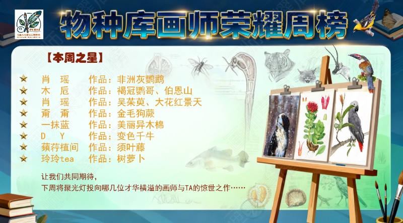【物种库画师荣耀周榜】是专属于科学绘画师的每周荣耀舞台