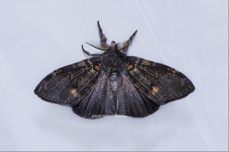 · 樟蚕。它的出现,让我激动了好一阵子!开始在幕布前后打转让我抓拍屡拍屡败,当它停下来后,却赶也赶不走,它那翅上的眼斑如缀着月光,翩然而至时仿佛携带了整个星空的梦境,为是夜最惊艳的客人。