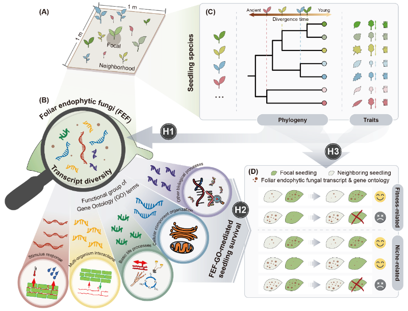 植物所生物多样性与生态安全研究团队揭示叶片内生真菌分子功能多样性调控亚热带森林幼苗存活的机制