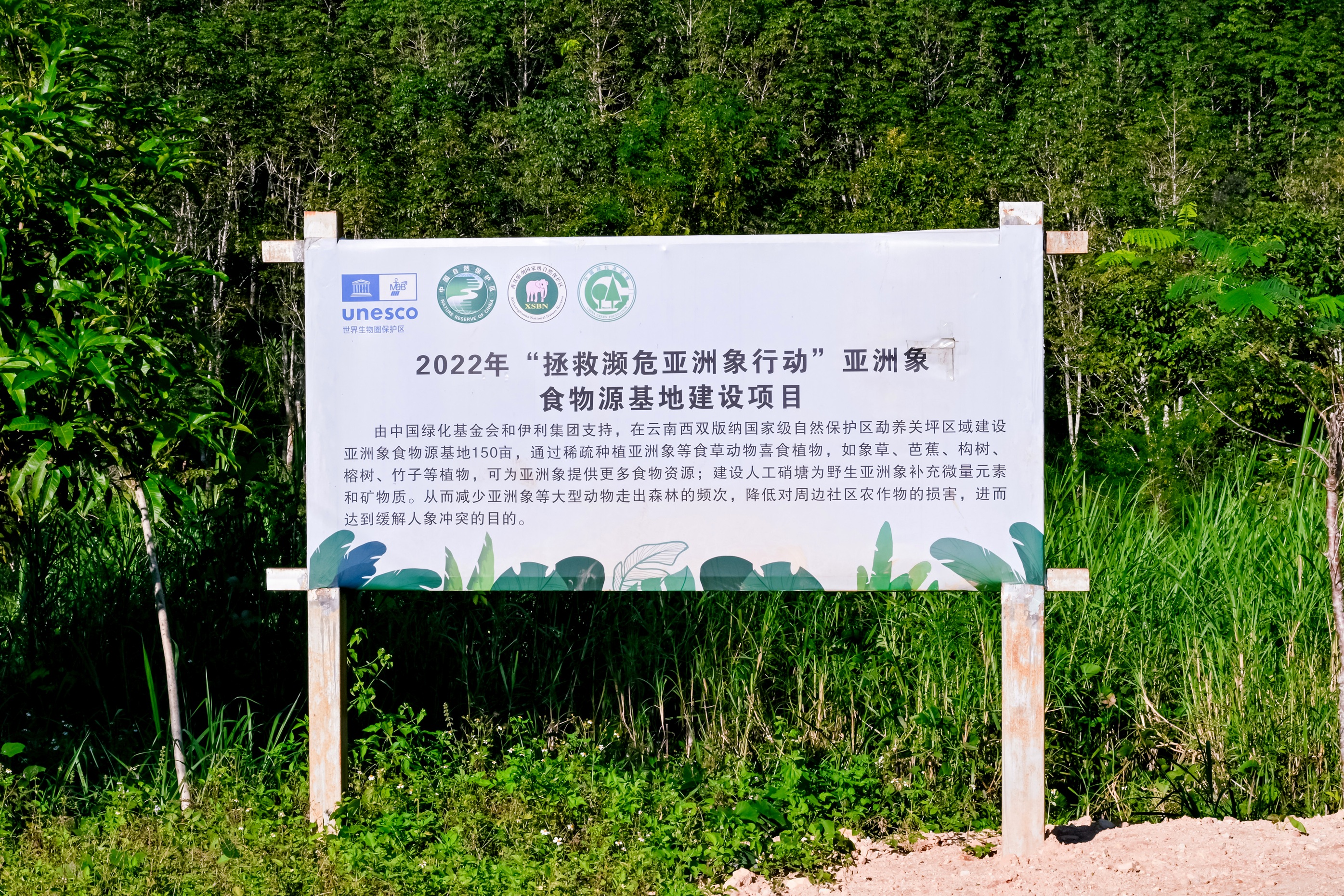 2022年,在中国绿化基金会的支持下,云南西双版纳国家级自然保护区及西双版纳州亚洲象保护协会共同开展了关坪亚洲象食物源基地建设,种植象草、芭蕉、黄竹等亚洲象喜食的植物,修建了两个人工硝塘为亚洲象补充微量元素和矿物质。