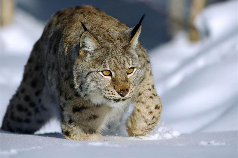 与老虎、狮子及狼等猛兽不同,猞猁在捕猎时,除了会寻找岩石、树木等物体作为掩体隐蔽自身,还会提前预判猎物的移动路线,随后绕至猎物的必经之路前方耐心等候。一旦猎物进入它的攻击范围,猞猁便会迅速扑上前去,用锋利的爪牙将其咬杀;即便首次攻击失利,它也能快速调整状态,紧追猎物不放,同时寻找下一次进攻的机会。