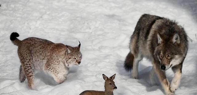 作为同属肉食性的动物,狼与猞猁的主要食物来源高度重合,均以兔子、小鹿、野猪等草食动物为食,这就导致两者在食物资源上存在竞争关系,难免会出现猎物不足的情况。
